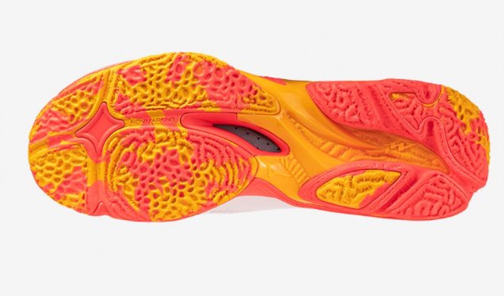 - MIZUNO WAVE Cette chaussure est dotée de la nouvelle structure WAVE spécialement développée pour offrir un soutien maximal lors des sauts. La PLAQUE est étendue sur l'extérieur de l'avant-pied afin de fournir un soutien maximal pour la stabilité de la foulée et un excellent retour d'énergie lors des sauts.